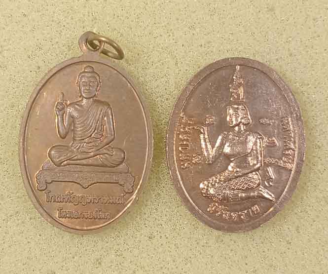 เหรียญพระพรหม อ.ทองแถม ศาสตระรุจิ อาจารย์ใหญ่ในสายวิชาการพรหมศาสตร์ 2 เหรียญ + เหรียญบรมครูศาสตร์ ดร.ภิญโญ พงษ์เจริญ + เหรียญบรมครูปู่เจ้าสมิงพราย |