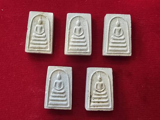 สมเด็จคะแนน 87 หลวงพ่อแพ วัดพิกุลทอง สิงห์บุรี สร้างปี 2534 ใช้เนื้อผงเกสรที่สร้างแพ 4 พันและปลุกเสกพร้อมแพ 4 พัน ฝังตะกรุดทองคำทุกองค์ กล่องเดิม พร้อมกัน 5 องค์ <307> |