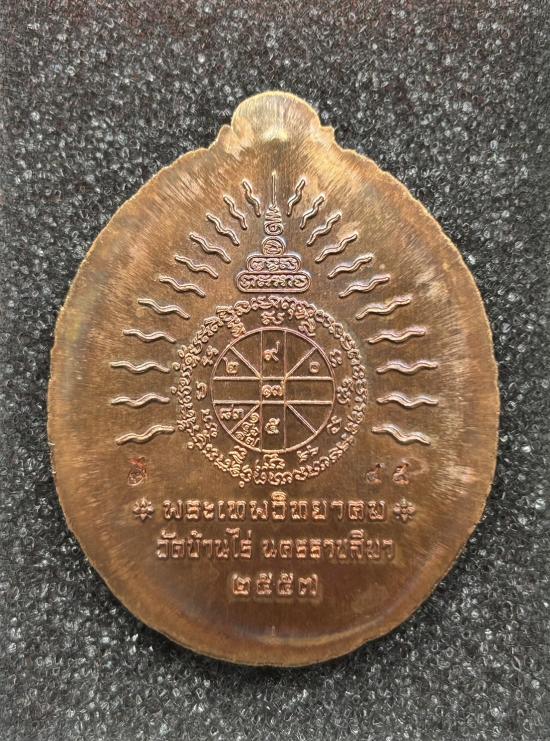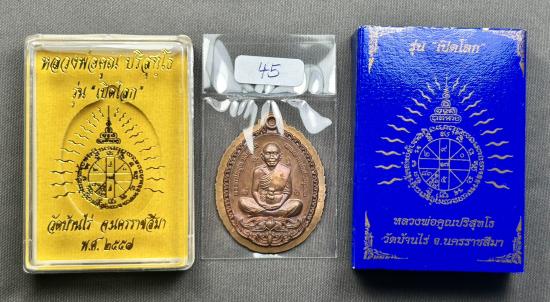เหรียญหลวงพ่อคูณ วัดบ้านไร่ รุ่น "เปิดโลก" ปี 57 "เนื้อทองแดงไม่ตัดปีก โค้ด ๙ รอบ" (กรรมการ) เลข 45