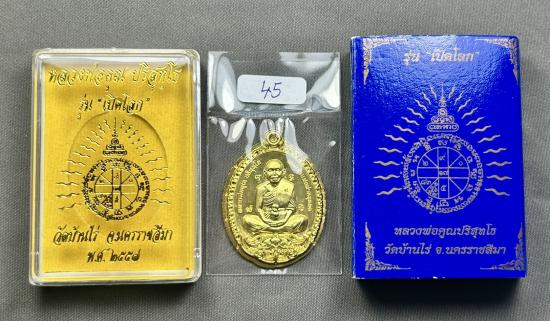 เหรียญหลวงพ่อคูณ วัดบ้านไร่ รุ่น "เปิดโลก" ปี 57 "เนื้อทองระฆังไม่ตัดปีก โค้ด ๙ รอบ" (กรรมการ) เลข 45