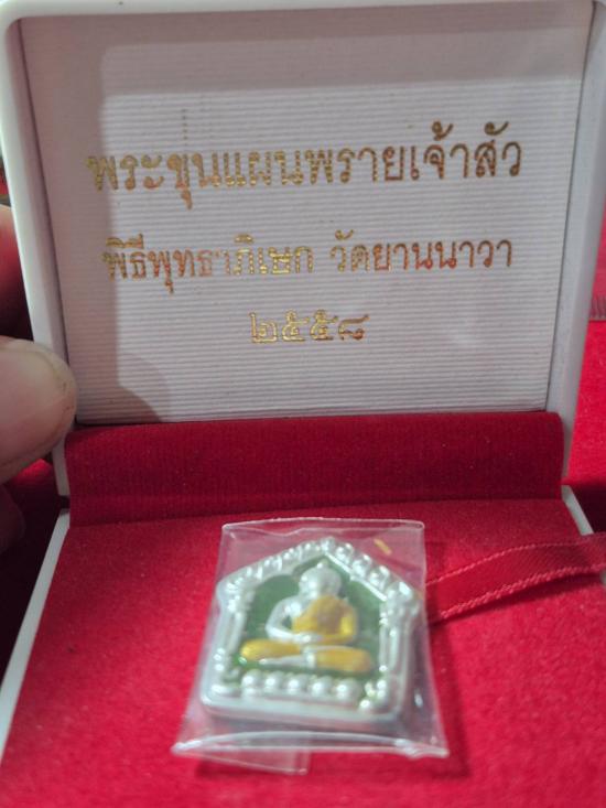 พระขุนแผน เนื้อเงินลงยาเขียว จีวรเหลือง วัดยานนาวา มาพร้อมกล่องเดิมๆ