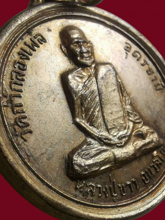 เหรียญหลวงปู่ขาว อนาลโย วัดถ้ำกลองเพล รุ่นสร้างศาลาโรงธรรม ออกวัดปัญจสมณาราม เนื้อทองแดงกระไหล่ทอง ปี2516 จ.อุบลราชธานี |