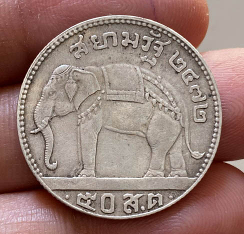 เหรียญ พระประชาธิปกหลังช้าง รัชกาลที้ 7 ราคา ๕๐ ส.ต. เนื้อเงินแท้ สวยมาก |