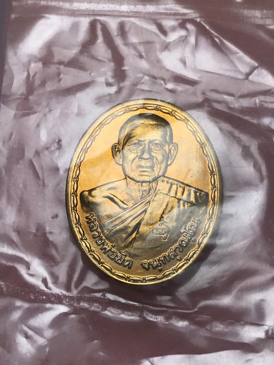เหรียญหลวงพ่อยิด วัดหนองจอก รุ่นกองกษาปณ์ ปี๓๔ เนื้อกะไหล่ทอง ซองเดิมๆ