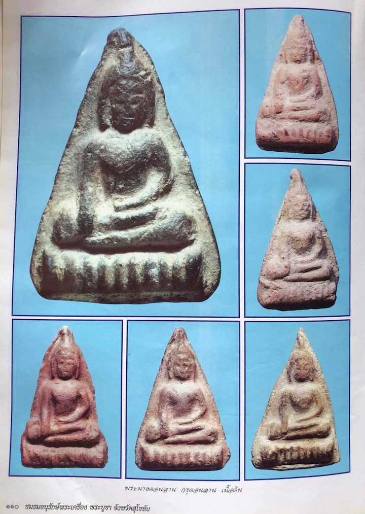 พระเครื่องที่หลวงปู่เดินหนแจกในคืนนั้น คือ พระนางพญากรุดอนลาน จังหวัดสุโขทัย พระเครื่องชุดนี้ทราบว่าแตกกรุมานับหมื่นองค์ ทั้งไม่มีใครรู้ประวัติการสร้างจึงไม่เป็นที่นิยมเชิงพุทธพาณิชย์ แต่ศิษย์ในสายหลวงปู่เดินหนเมื่อไปพบพระดังกล่าวมักเช่าหาเก็บไว้ ด้วยทราบดีว่าพระดังกล่าวเป็นพระดี เป็นพระที่หลวงปู่เดินหนออกปากชมว่าขลัง ซึ่งพระนางพญากรุดอนลานนี้อยากกล่าวเสริมซักนิดว่า ในอดีตเคยมีศิษย์ หลวงพ่อกวย วัดโฆสิตาราม นำพระชุดนี้มาถวายท่าน หลวงพ่อกวยจึงนำมาปลุกเสกแจกศิษย์ สมัยก่อน อาจารย์สมจิตรเขียนว่าเป็น **พระพิมพ์เม็ดบัว** ซึ่งก็คือพระนางพญากรุดอนลานนี้เอง พระชุดที่หลวงพ่อกวยเสกนี้ตกค้างอยู่ที่วัดโฆสิตารามจนปี พ.ศ. ๒๕๓๕- ๒๕๓๖ มีผู้ไปทำบุญออกมาจากวัดจนหมด และทราบว่าในสมัยก่อนศิษย์หลวงพ่อกวยอย่าง หลวงพ่อเฟื่อง วัดบางสำราญ จังหวัดสิงห์บุรี เคยได้พระนางพญาดอนลานชุดนี้ พร้อมพระเนื้อดินหลายพิมพ์ เช่น พระลีลาลิ้นเป็ด, พระขุนแผน, พระร่วงอุ้มบาตรถอดพิมพ์ ฯลฯ ไปจากหลวงพ่อกวยเพื่อไปออกให้ทำบุญที่วัดบางสำราญ จึงขอนำมาบันทึกไว้เพื่อเป็นข้อมูลให้ท่านทั้งหลายได้ทราบทั่วกันดังนี้ค่ะ |