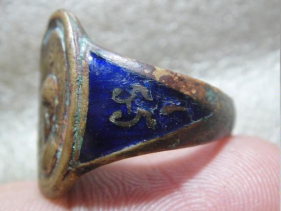 ชื่อพระเครื่อง วัดใจเคาะเดียว.......100.....แหวนเก่า หลวงพ่อบ่าย วัดช่องลม สมุทรสงคราม เนื้อฝาบาตรลงยา