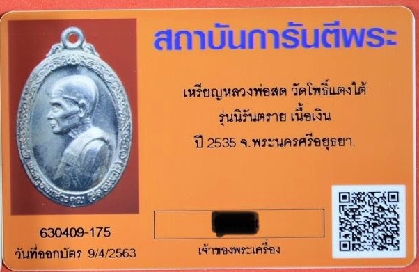 เหรียญหลวงพ่อสด วัดโพธิ์แตงใต้ จ.อยุธยาฯ รุ่นนิรันตราย เนื้อเงิน ปี 2535 (สวยเดิมๆ)
