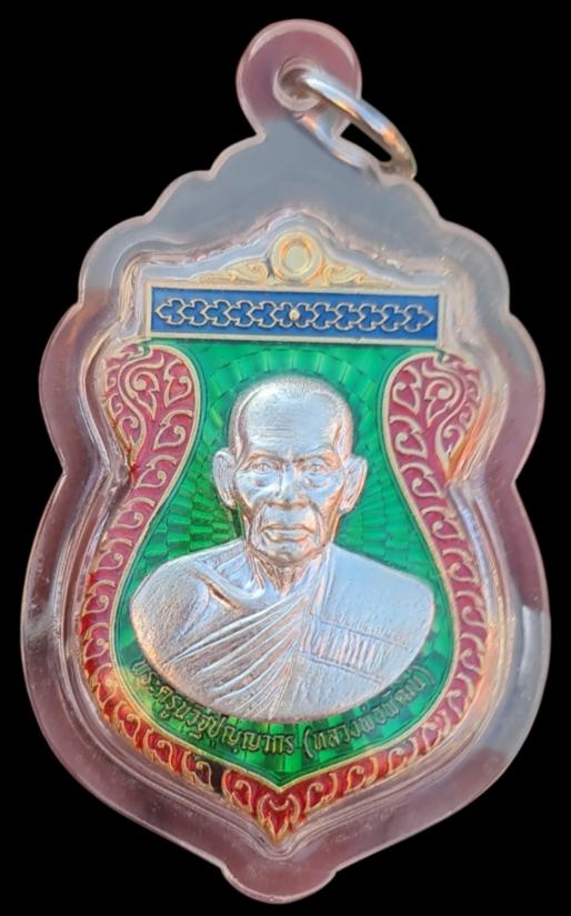 เหรียญมหาสิทธิโชค เนื้อกระไหล่ทองลงยาเขียวหน้ากากเงิน หลวงพ่อพัฒน์ วัดห้วยด้วน โค๊ตเลข๒๐๔