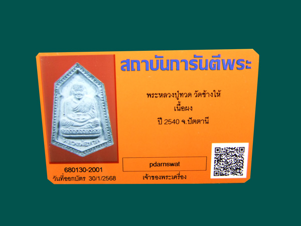 .วัดใจ...เดือนสุดท้ายของปี....พระหลวงปู่ทวด วัดช้างไห้ พิธีเสาร์ 5 ปี2540 พร้อมบัตรรับรอง