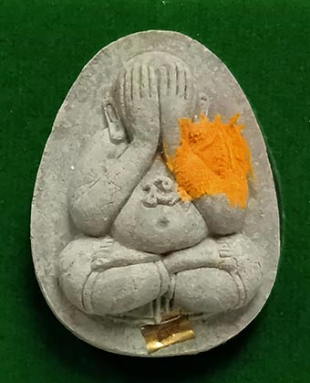 พระปิดตาสารพัดดี 3 ไตรมาส หลวงพ่อคูณ ปริสุทโธ ออกวัดบ้านคลอง ปี 2538 เนื้อผงธูป ฝังตะกรุด ติดจีวร ไม่มีปรก เคาะเดียว |
