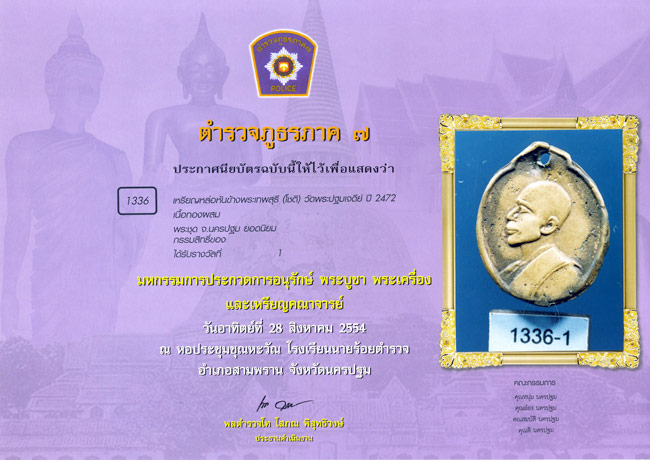 เหรียญหล่อหันข้างเจ้าคุณโชติ วัดพระปฐมเจดีย์ ปี2472 พร้อมใบประกาศรางวัลงานสมาคมฯ ครับ