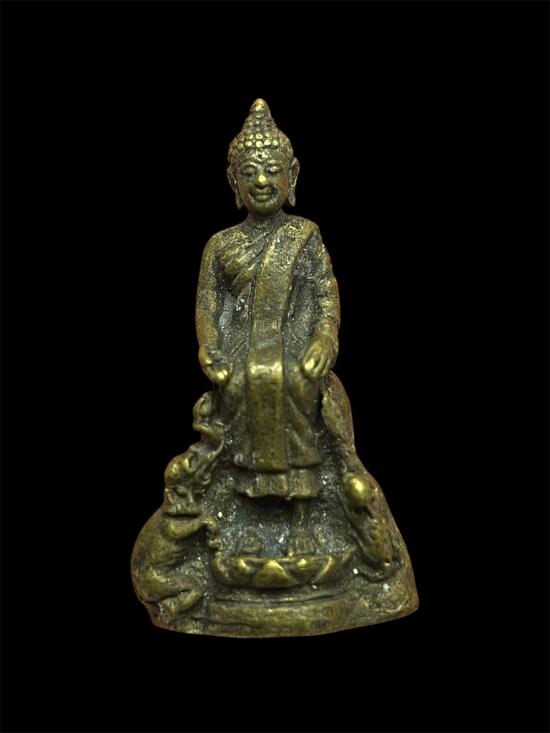 รูปหล่อพระพุทธปางป่าเลไลย์ หลังยันต์ เนื้อทองเหลือง