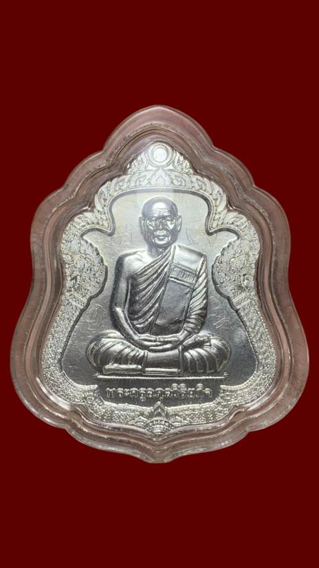 เหรียญ หลวงพ่อเอื้อน วัดวังแดงใต้ รุ่น ฉลอง 6รอบ เนื้อเงิน พิมพ์ใหญ่ มีรอยจารย์มือหลวงพ่อ หมายเลข64