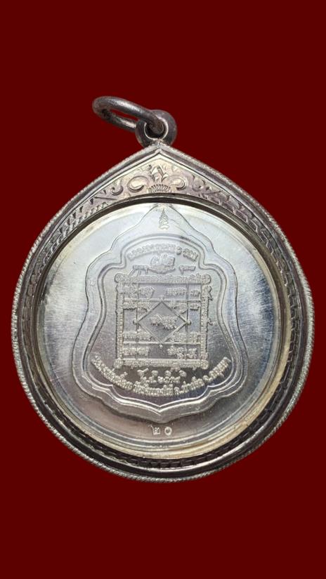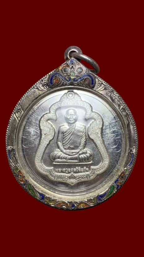เหรียญ หลวงพ่อเอื้อน วัดวังแดงใต้ รุ่น ฉลอง 6รอบ เนื้อเงิน พิมพ์เล็ก ไม่ตัดปีก มีรอยจารย์หลวงพ่อ + เลี่ยมเงินลงยา หมายเลข 20