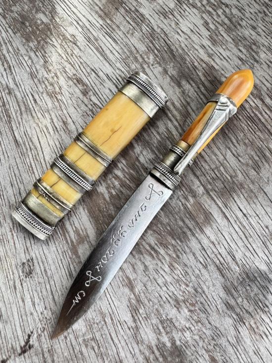 @เคาะเดียวแดง@ # มีดหมอ หลวงพ่อกวย ปี2521 ด้ามงา+ฝักงา ยาว 4.5นิ้ว ลาย ตอก จะ อะ ปะ คะ