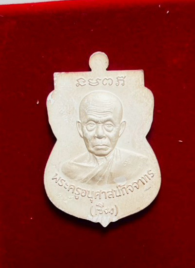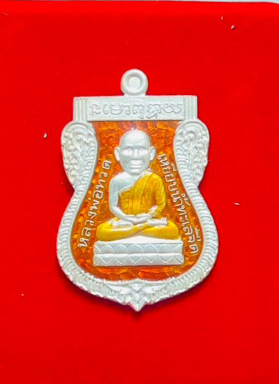วัดใจ เหรียญเสมาหัวโต พ่อท่านเขียว วัดห้วยเงาะ จ.ปัตตานี เนื้อเงินลงยาสีแดง เลข25 |