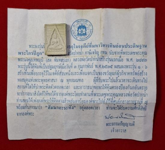 พระสมเด็จ วัดปากน้ำ ภาษีเจริญ ปี2532 (รุ่น6 มาพร้อมซองเดิม ใบกำกับ สภาพสวย นิยม หายาก) |