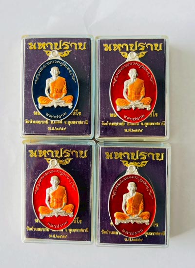 วัดใจ เหรียญมหาปราบ1 หลวงปู่บุญ ธมมธีโร วัดบ้านหมากมี่ จ.อุบลราชธานี เนื้อกะไหล่เงินลงยา 4 เหรียญ |