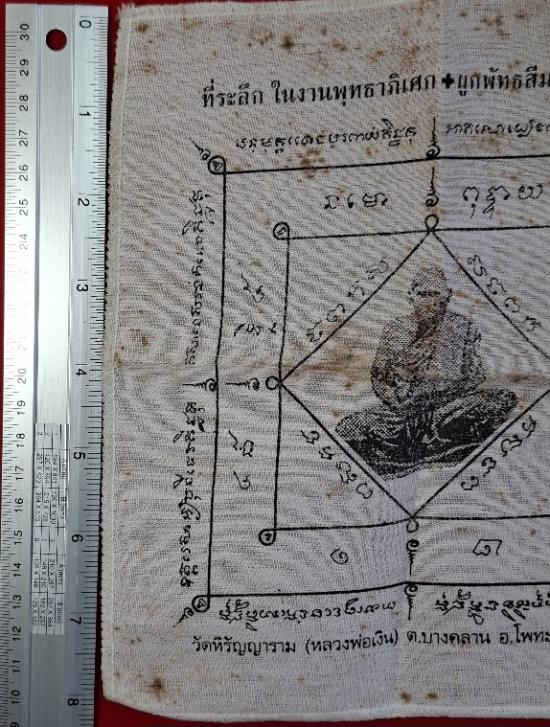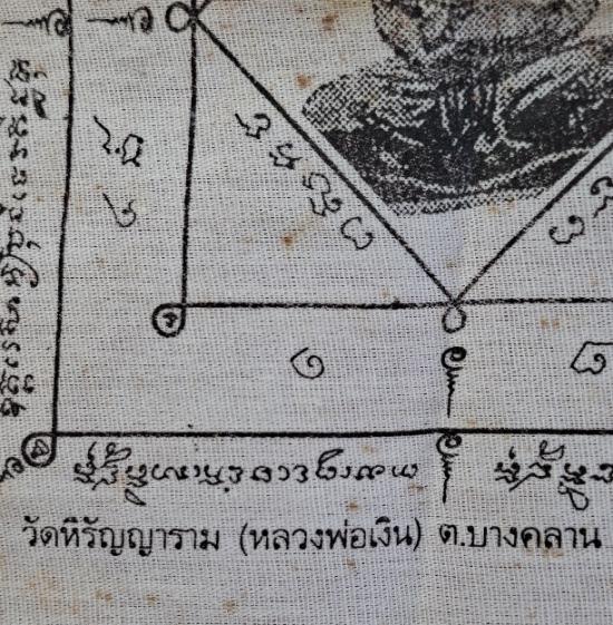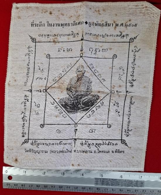 ผ้ายันต์ หลวงพ่อเงิน วัดบางคลาน จ.พิจิตร ปี2515 (พิธีเดียวกับรูปหล่อหลวงพ่อเงิน วัดบางคลาน ปี2515 สภาพสวย นิยม หายาก) |