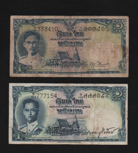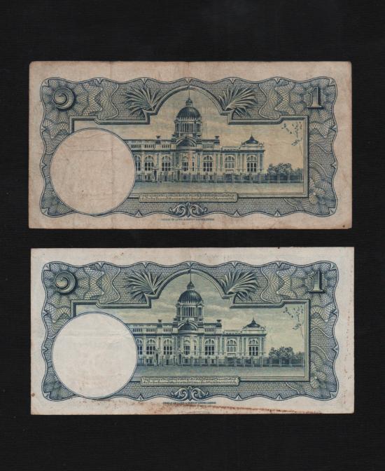 วัดใจ ธนบัตร 1 บาท จำนวน 2 ฉบับรุ่นโทมัส มีทั้งหน้าหนุ่ม (นิยม) ลายน้ำพานรัฐธรรมนูญ และรุ่นโทมัส หน้าธรรมดา หายากมาก |