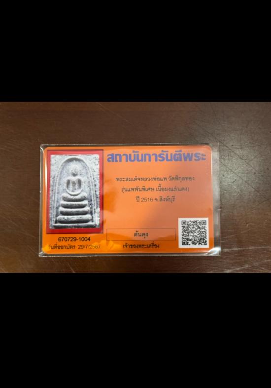 พระสมเด็จหลวงพ่อแพ วัดพิกุลทอง จ.สิงห์บุรี รุ่นแพพันพิเศษ เนื้อแร่ ปี 2516 มีตะกรุดทองคำ เงิน และนาก |