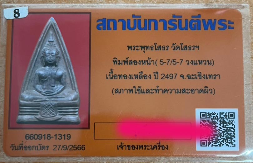 พระพุทธโสธร พิมพ์สองหน้า(57/57 วงแหวน)ปี 2497 จ.ฉะเชิงเทรา