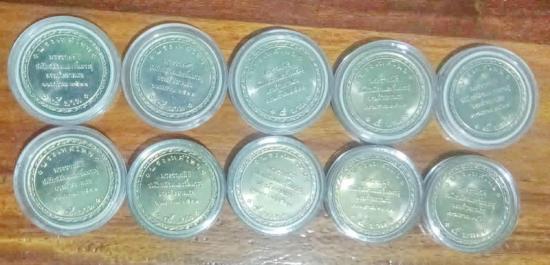เหรียญ พระราชพิธี สมโภชเดือนและขึ้นพระอู่ พระเจ้าหลานเธอ พระองค์เจ้าพัชรกิติยาภา องค์ภา จำนวน 10 เหรียญ สภาพไม่ผ่านใฃ้ |