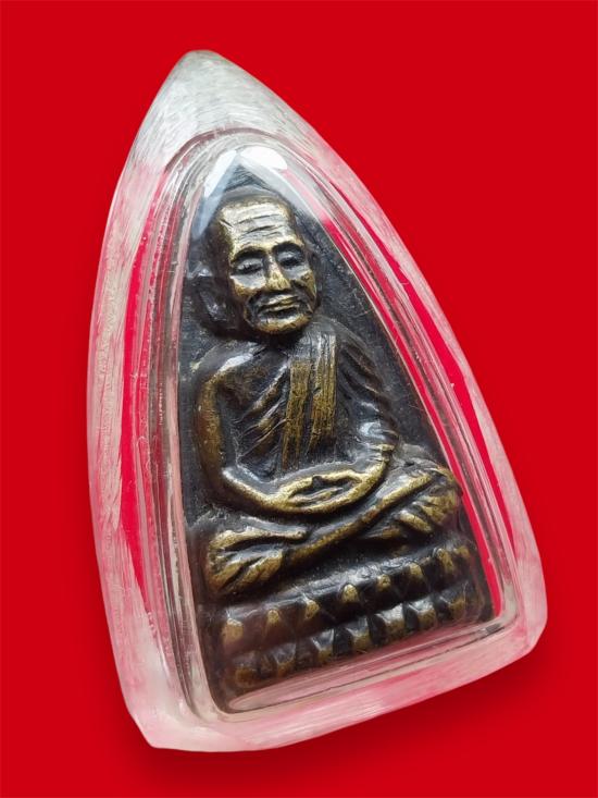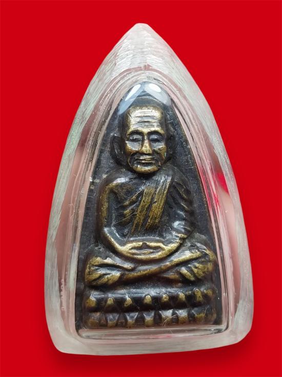 หลวงปู่ทวดหลังหนังสือปี 24 เนื้อทองเหลืองรมดำ บล็อก A แข้งขีด [นิยม]