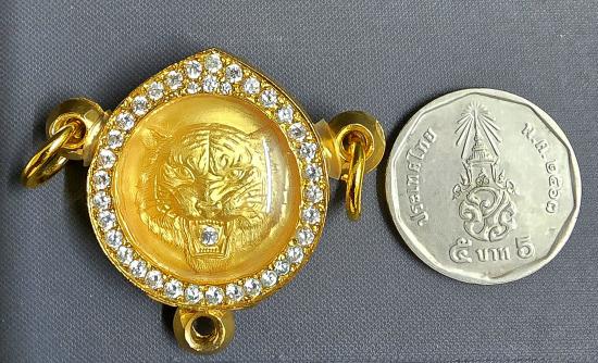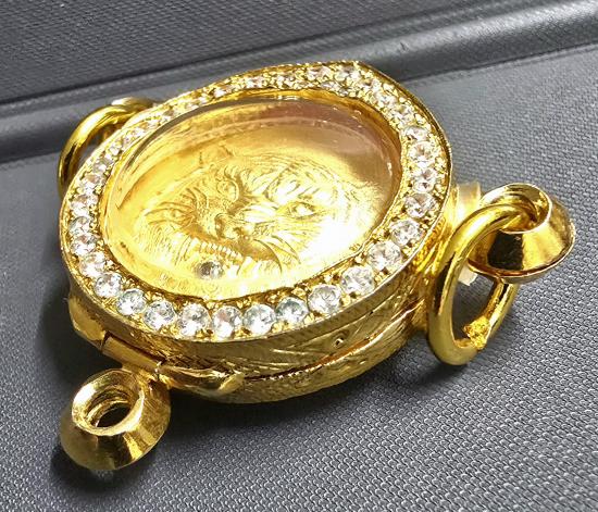 เหรียญกลมหน้าเสือ รุ่น"เจริญพร" หลวงปู่บุญมา โชติธัมโม วัดเขาแก้วทอง ปราจีนบุรี เนื้อนวะโลหะชุบทองคำ ฝังเพชรปาก ใส่ตลับอิตาลีชุบทองฝังเพชร 3 ห่วง หมายเลข ๕...พร้อมห้อยสวยๆครับ เคาะแรกแดง (ไม่มีกล่อง |
