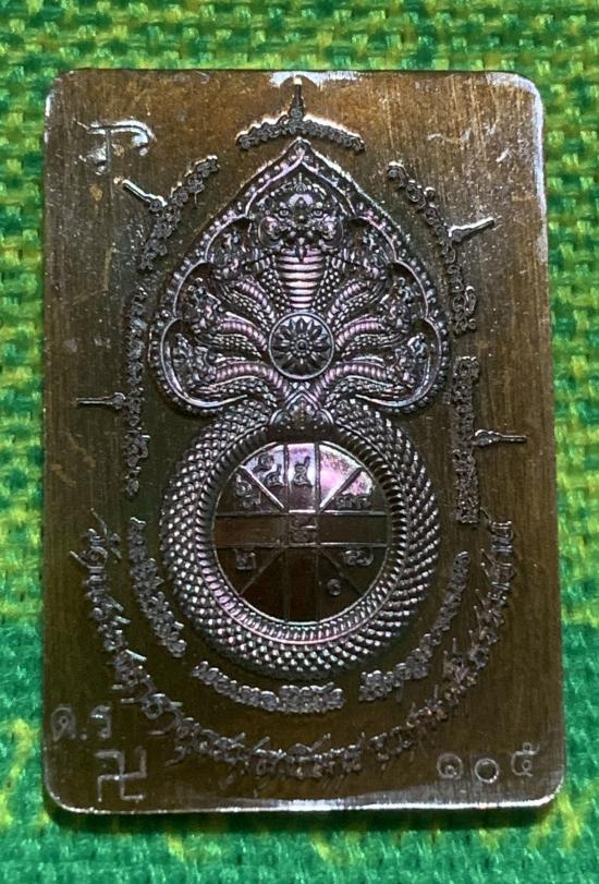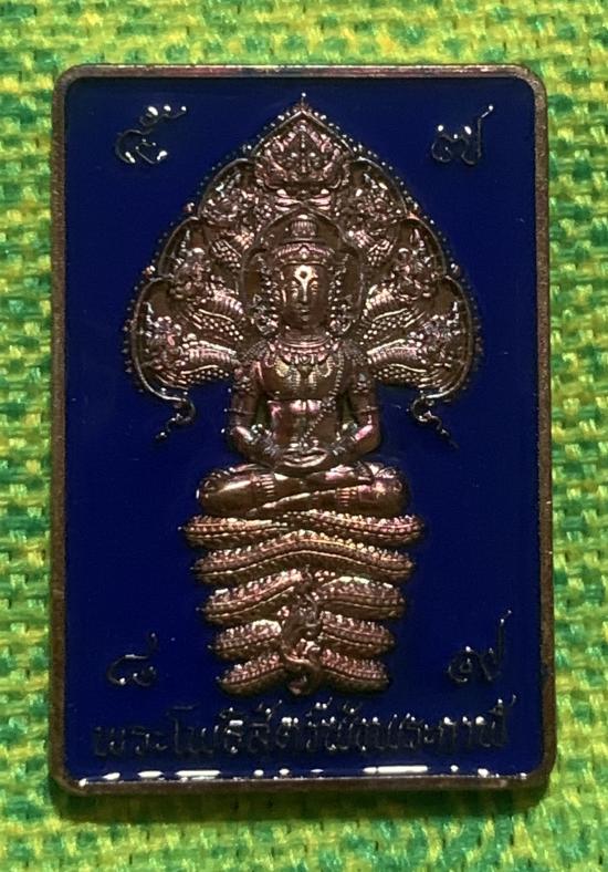 เหรียญพระโพธิสัตว์พังพกาฬ ดวงดี วัดพระมหาธาตุวรวิหาร จ.นครศรีธรรมราช เนื้อทองแดงผิวรุ้งลงยาน้ำเงิน หมายเลข ๑๐๕