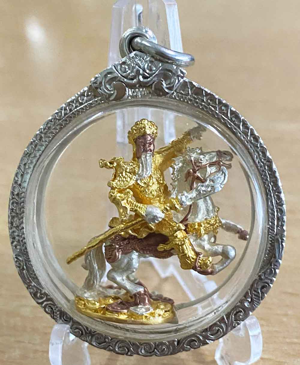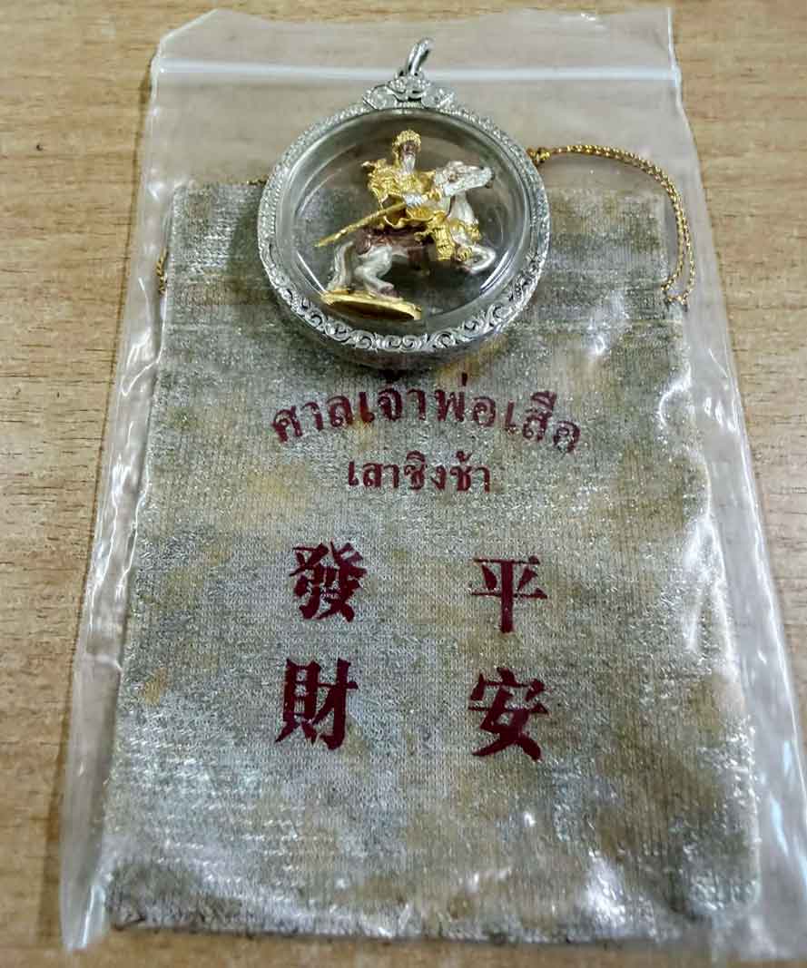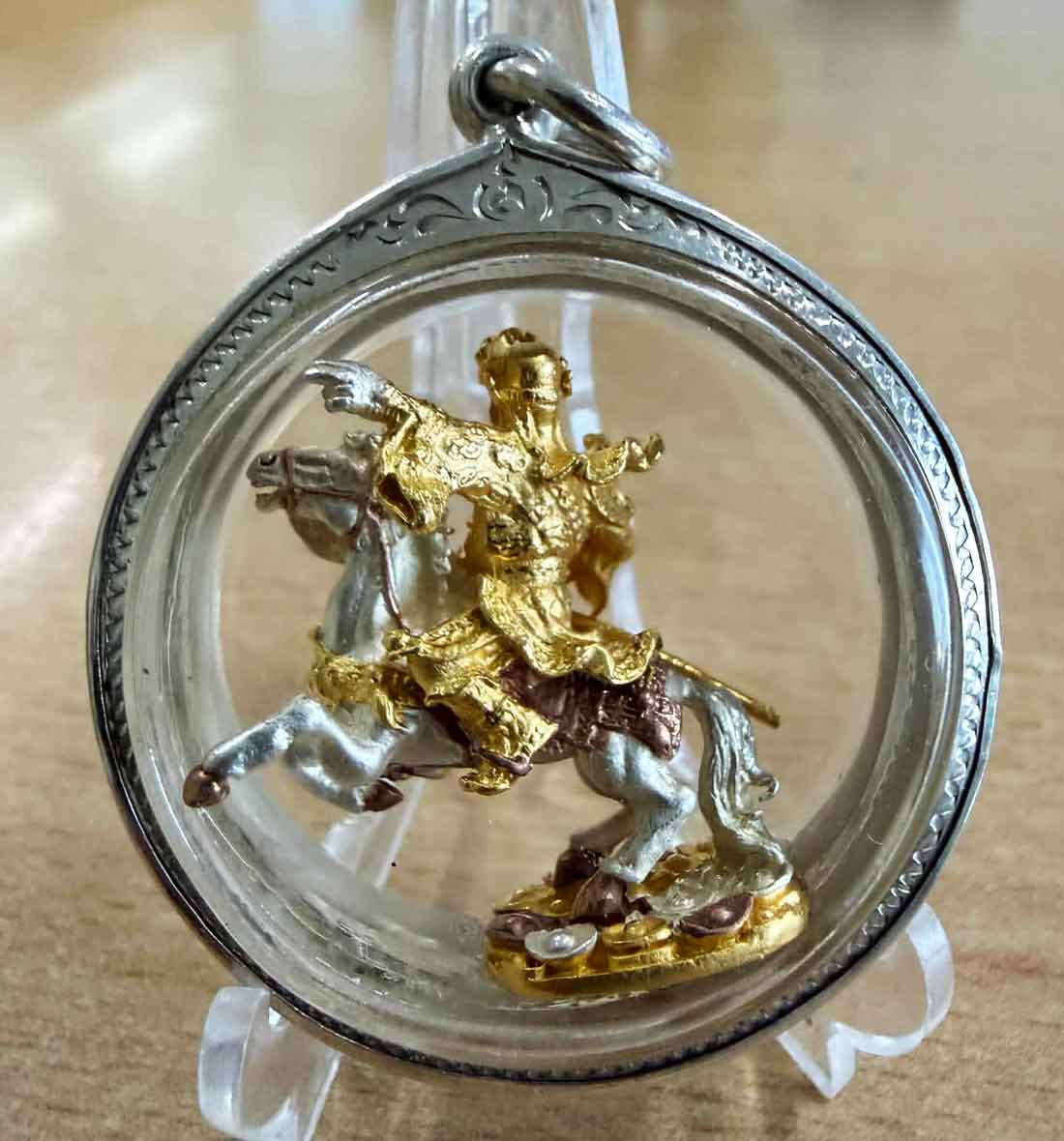 อากงกวนอูทรงม้า ศาลเจ้าพ่อเสือ เนื้อสามกษัติย์ เลี่ยมกรอบเงินแท้