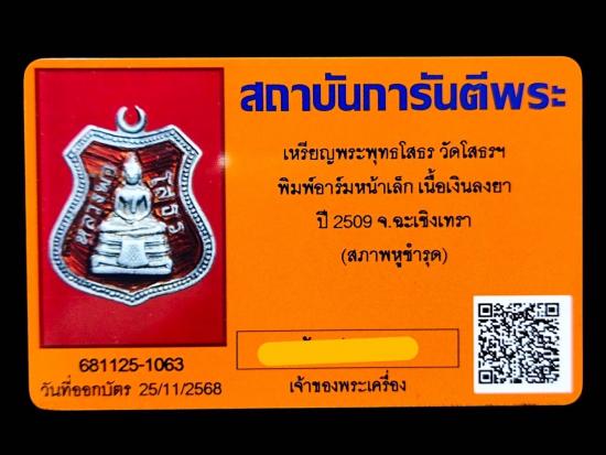 เหรียญพระพุทธโสธร วัดโสธรๆ พิมพ์อาร์มหน้าเล็ก เนื้อเงินลงยาแดง ปี2509 จ.ฉะเชิงเทรา ยาไม่มีกระเทาะ พร้อมบัตรG-PRA