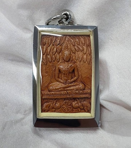 ชื่อพระเครื่อง พระพุทธนฤมิตรโชค กวางใหญ่ หลวงพ่อจรัญ วัดอัมพวัน ปี 2511 เกศา จีวร กรอบสแตนเลสพุกพร้อมห้อยบูชา