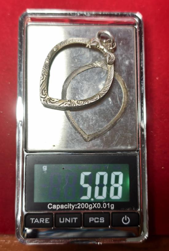 กรอบเงินมือสองเดิมๆ ดีไซน์สวยงามเป็นรูปทรงหัวใจ สามารถใส่เหรียญแตงโม หลวงพ่อเกษม เขมโกได้พอดี(หรือรุ่นใกล้เคียง)