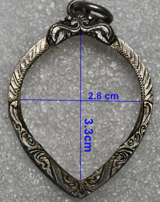 กรอบเงินหัวสิงห์ ทรงหัวใจ ใส่เหรียญแตงโม หลวงพ่อเกษม หรือรุ่นใกล้เคียง |