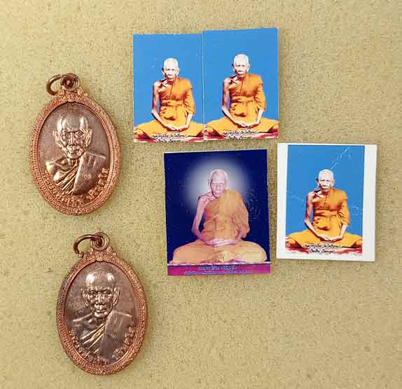 พระจังหวัดนครนายก 4 เหรียญ + รูปถ่าย 4 บาน |