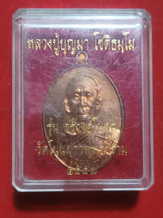 ชื่อพระเครื่อง เหรียญหลวงปู่บุญมา รุ่นสร้างอุโบสถ วัดโนนฝาวปี57 เนื้อทองแดง กล่องเดิม