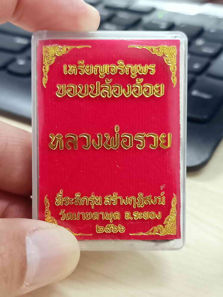 วัดใจ 100 เหรียญเจริญพร ขอบปล้องอ้อย หลวงพ่อรวย วัดมาบตะพุด จ.ระยอง 2566 ทองแดงรมดำ ลงยาจีวร หมายเลข 837 กล่องเดิม