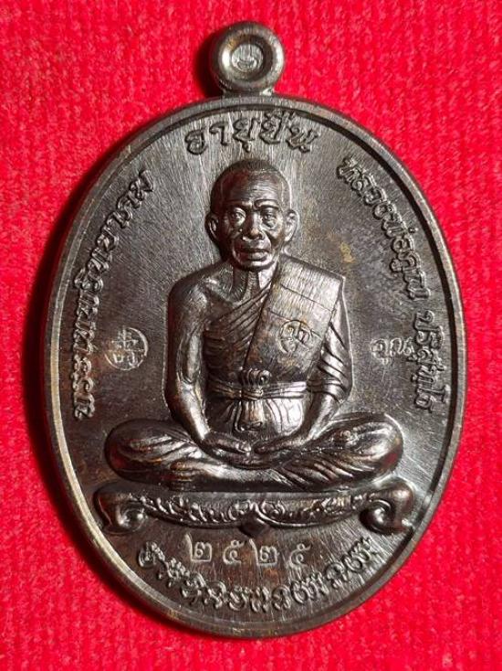 เหรียญหลวงพ่อคูณ ปริสุทโธ รุ่น อายุยืนบน 91 ออกวัดป่าตุ๊กตาทอง ปี 57 เนื้อ ทองแดงรมดำ หมายเลข 2525 สภาพสวย เคาะเดียวแดง