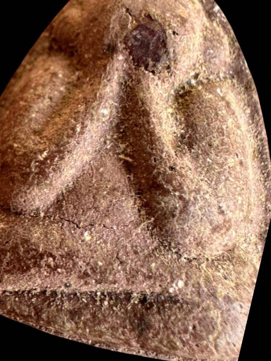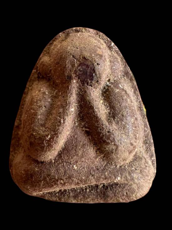 องค์นี้เป็นงานเก่าจัด พิมพ์อุ้มท้องคลาสสิก เนื้อจัดมีความแห้งเก่าแบบธรรมชาติ มีรอยคราบกรุเดิม ๆ ให้เห็นทั่วองค์ ด้านหลังมีอักขระยันต์โบราณจาง ๆ ดูมีเสน่ห์ของพระสายอีสานกลาง