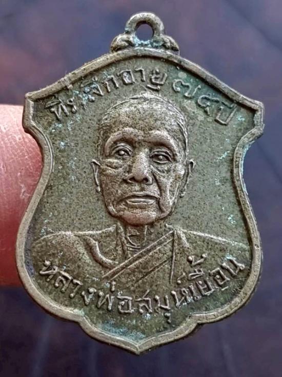 เหรียญหลวงพ่อสมุห์เยื้อน วัดถ้ำช้างเผือก จ.ลพบุรี ปี 2513 (มีจีวร) |