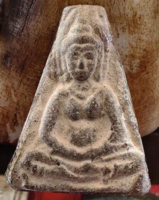 พระเนื้อดินเก่าทรงสามเหลี่ยมไม่ทราบที่ ได้บ้านๆเลยครับ