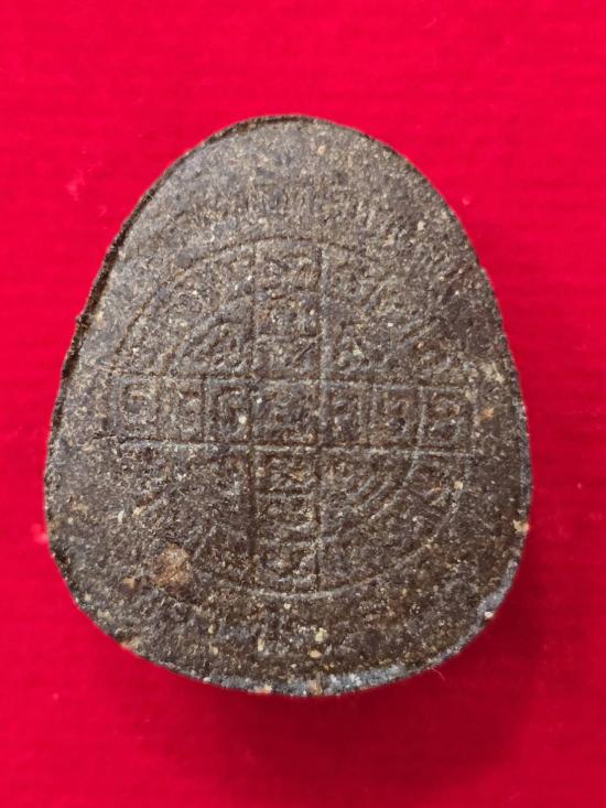 พระปิดตายันต์ดวงเล็ก ปี 2523 สมเด็จพระญาณสังวร (เจริญ) วัดบวรนิเวศวิหาร เนื้อผงใบลาน สภาพสวย ขอบตั้ง นิ้วมือติดชัด หลวงปู่โต๊ะและเกจิคณาจารย์ร่วมยุคปลุกเสกมากมาย <313> |