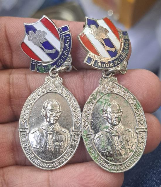 เหรียญ ภปร.พร้อมเข็มกลัดติดหน้าอก พระบาทสมเด็จพระเจ้าอยู่หัว ร.9 องค์อุปถัมภ์ลูกเสือชาวบ้าน " เสียชีพอย่าเสียสัตย์ " "อยู่ครบชุดครับ" สภาพตามรูปครับ 2 เหรียญครับ