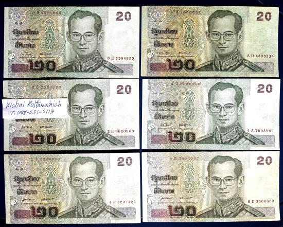 ธนบัตร 20 บาท ร.9 แบบ 15 ผ่านใช้น้อย 6 ใบ |