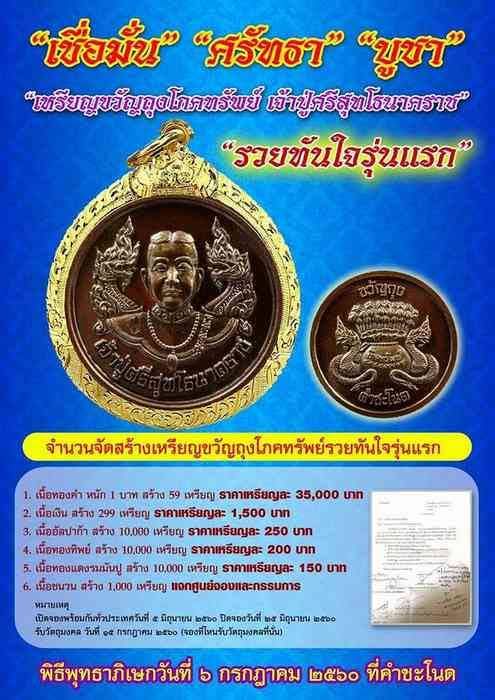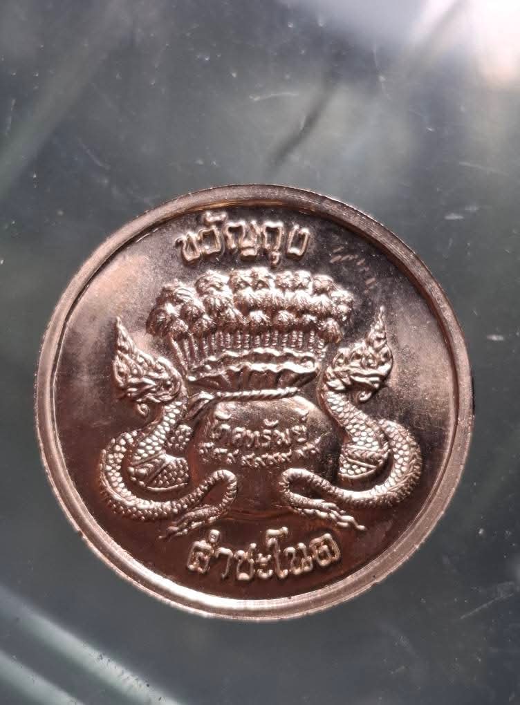 เหรียญขวัญถุงโภคทรัพย์ รวยทันใจ รุ่นแรก เจ้าปู่ศรี สุทโธนาคราช คำชะโนด จ.อุดรธานี ปี 60 เนื้อ อัลปาก้า หมายเลข๖๑๐๐ |