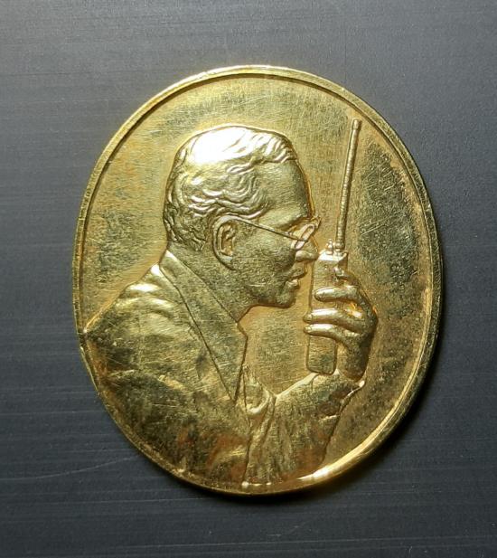 เหรียญในหลวงทรงวอร์ ปี 39 เนื้อทองแดง กะไหล่ทอง กรมไปรษณีย์โทรเลข |