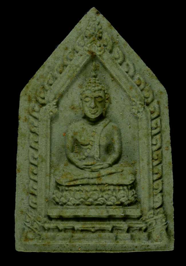 พระพุทธสิหิง เนื้อเขียวพิมพ์เล็ก โรยผงตะไบทอง เกษา สภาพสวย |