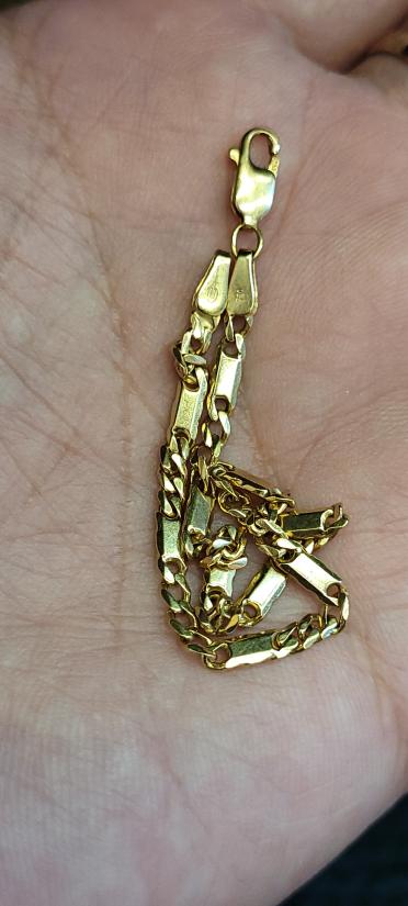 18k ความยาวประมาณ 7 นิ้ว ทองผมตีไว้ไม่เกิน 75% นะครับ แต่ 70% ขึ้นแน่นอนสภาพสวยครับ