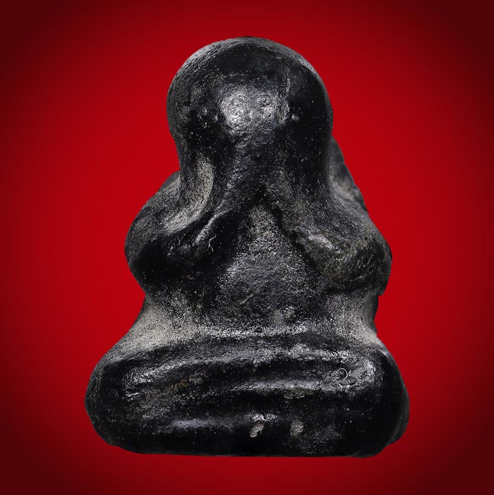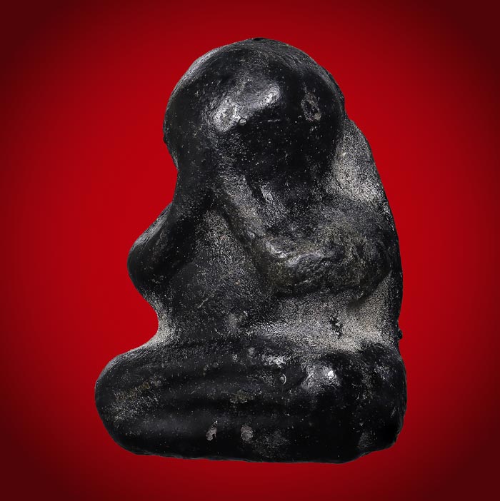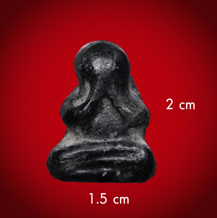 พระปิดตา เนื้อผงจุ่มรัก หลังเรียบ(ไม่ทราบที่) ขนาดพระฐาน 1.5 cm สูง 2 cm